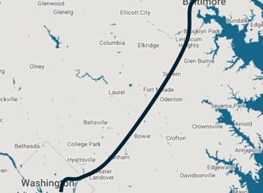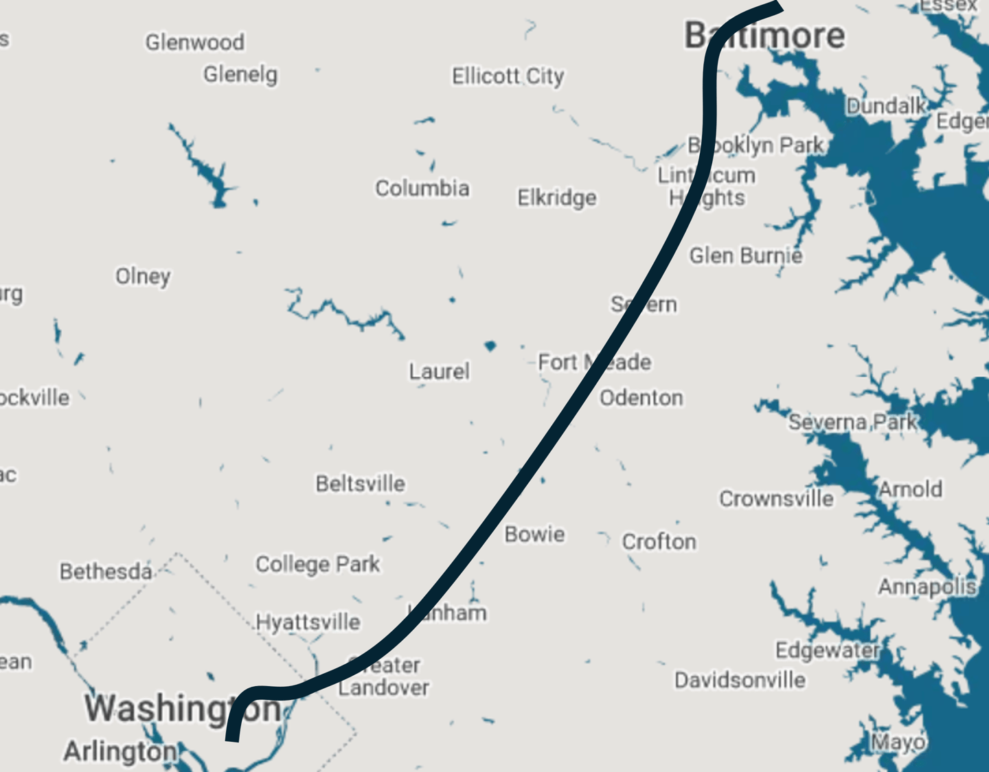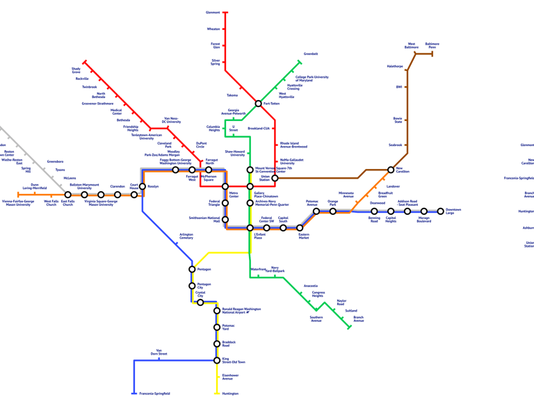 A metro line seamlessly connecting Washington, DC and Baltimore, MD