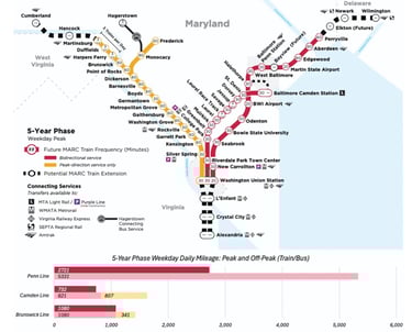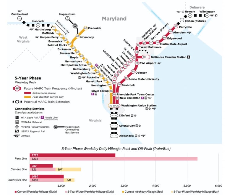 With all-day frequent service, existing transit-oriented development plans are enhanced. New Carrollton becomes a true transit hub with Purple, Bronze, and Orange Line service. Odenton is an easy commute to DC or Baltimore at any time of day. West Baltimore can become a key part of a Baltimore transit network with a future Red Line connection.
